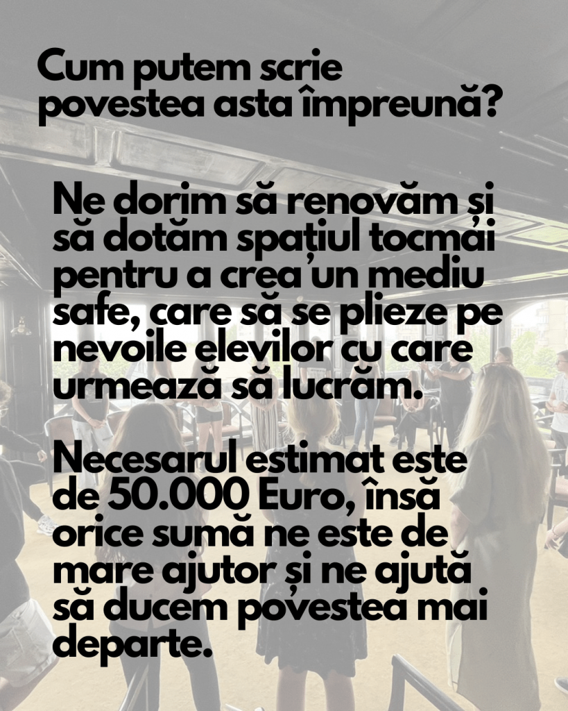 Ne dorim să renovăm și să dotăm spațiul tocmai pentru a crea un mediu safe, care să se plieze pe nevoile elevilor cu care urmează să lucrăm.